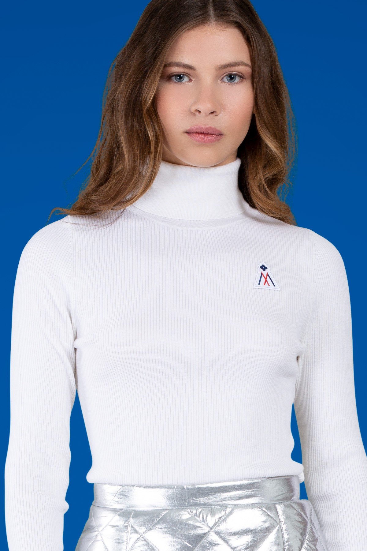 A refined long-sleeved turtleneck crafted from a luxurious blend of merino wool, acrylic, and polyester, finished with a Mont motif logo badge for a touch of understated elegance.